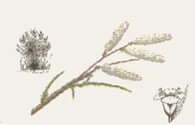 / Tamarix boveana Arbolillo que se asienta en suelos fuertemente salinos de saladares litorales e interiores. En España tiene sus poblaciones más importantes entre San Pedro del Pinatar y Torre García. |